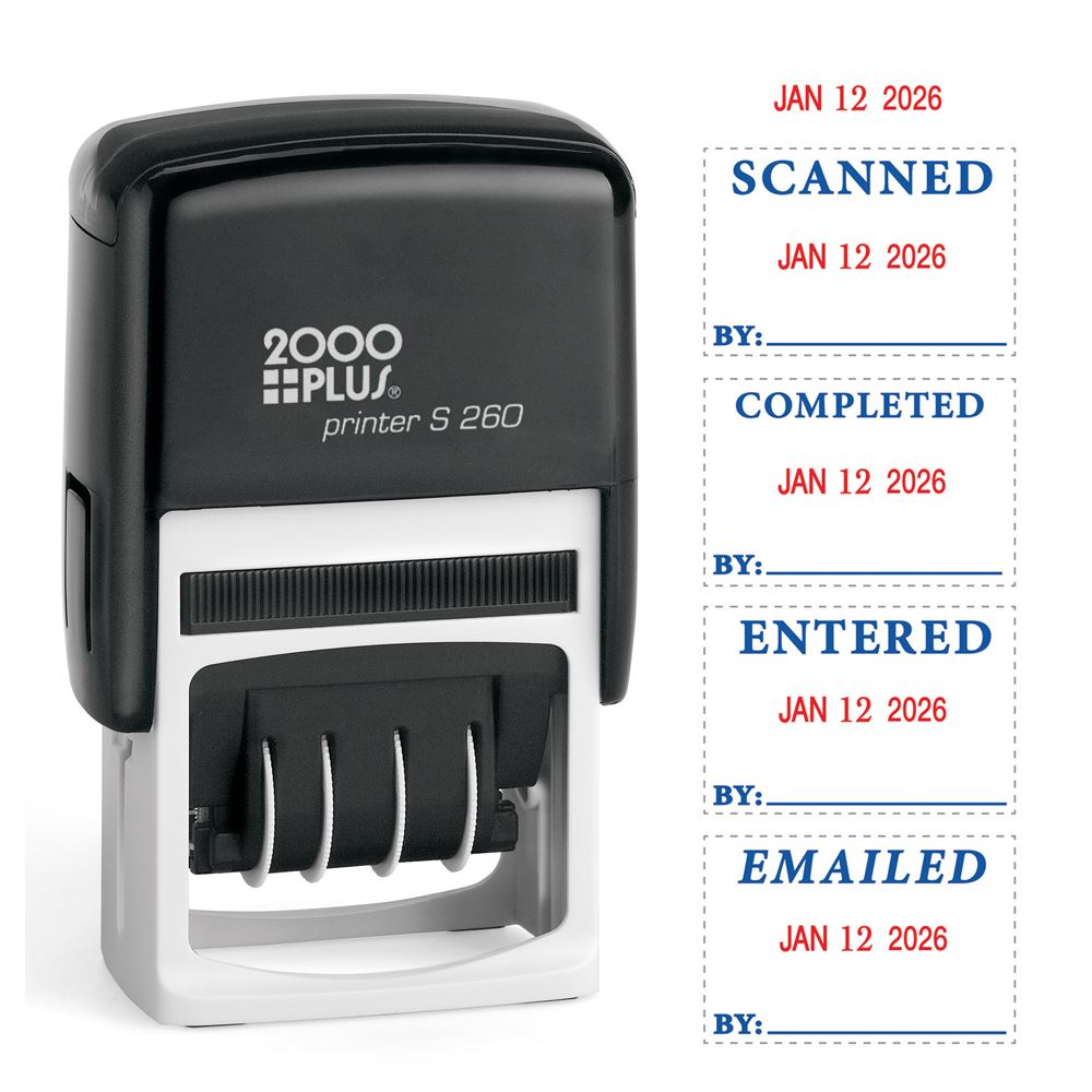 Efficiently manage your office tasks with the 2000 PLUS 4-In-1 Date Stamp. This versatile stamp features a date along with four popular e-messages—Scanned, Completed, Entered, and Emailed—making it a valuable tool for organizing and tracking important documents. The stamp comes with both red and blue ink options, allowing you to customize your messages according to your needs. With its self-inking design and replaceable pad, this stamp provides thousands of high-quality impressions, ensuring long-lasting and reliable performance. Stay organized and maintain a professional edge in your office with the 2000 PLUS 4-In-1 Date Stamp, a valuable addition to your office supplies.