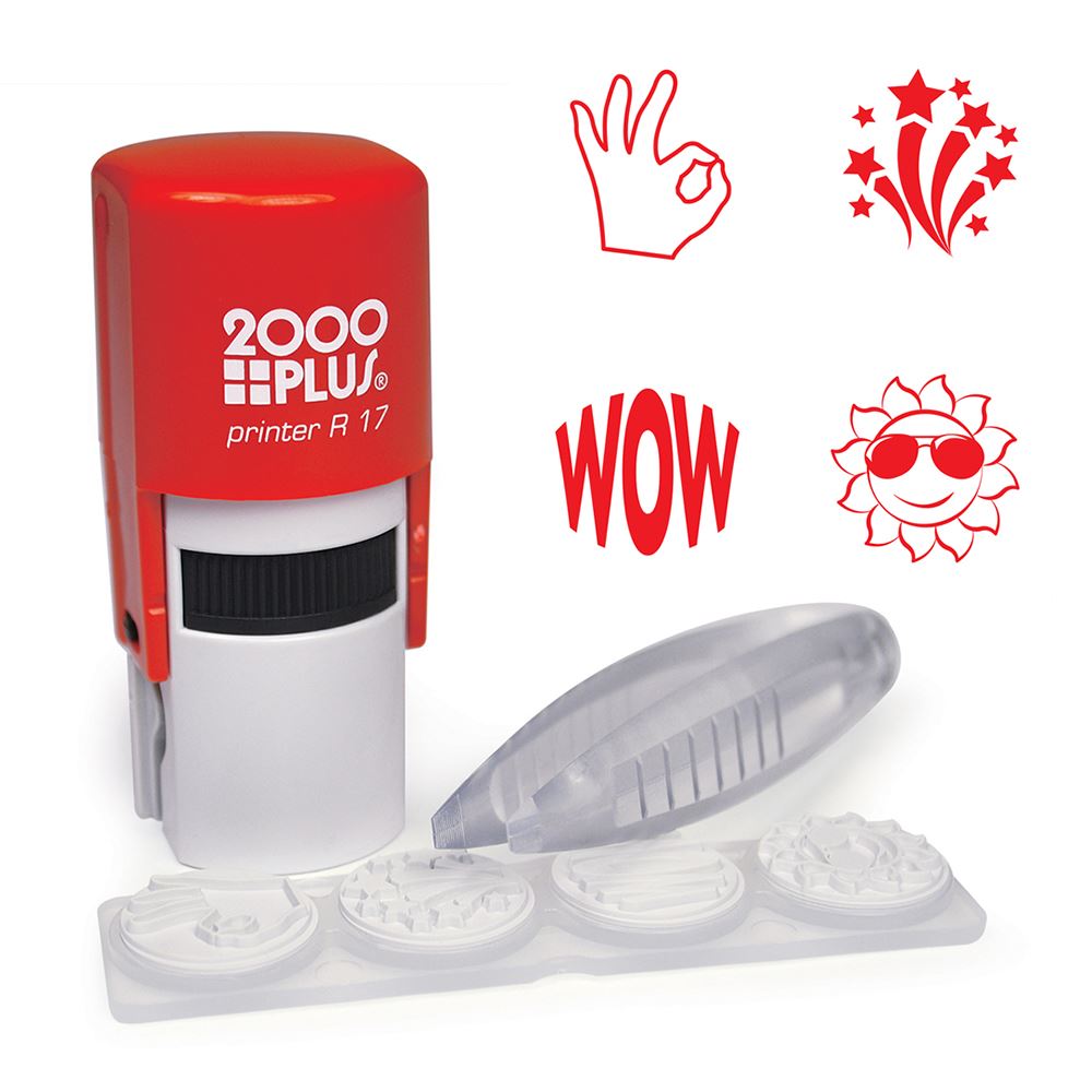 Great for adding flair to your stationery, this self-inking stamp offers 4 fun emoji designs. The 4-in-1 stamp lets you make stars, an OK hand gesture, the word "Wow" and a happy sun to bright your day.