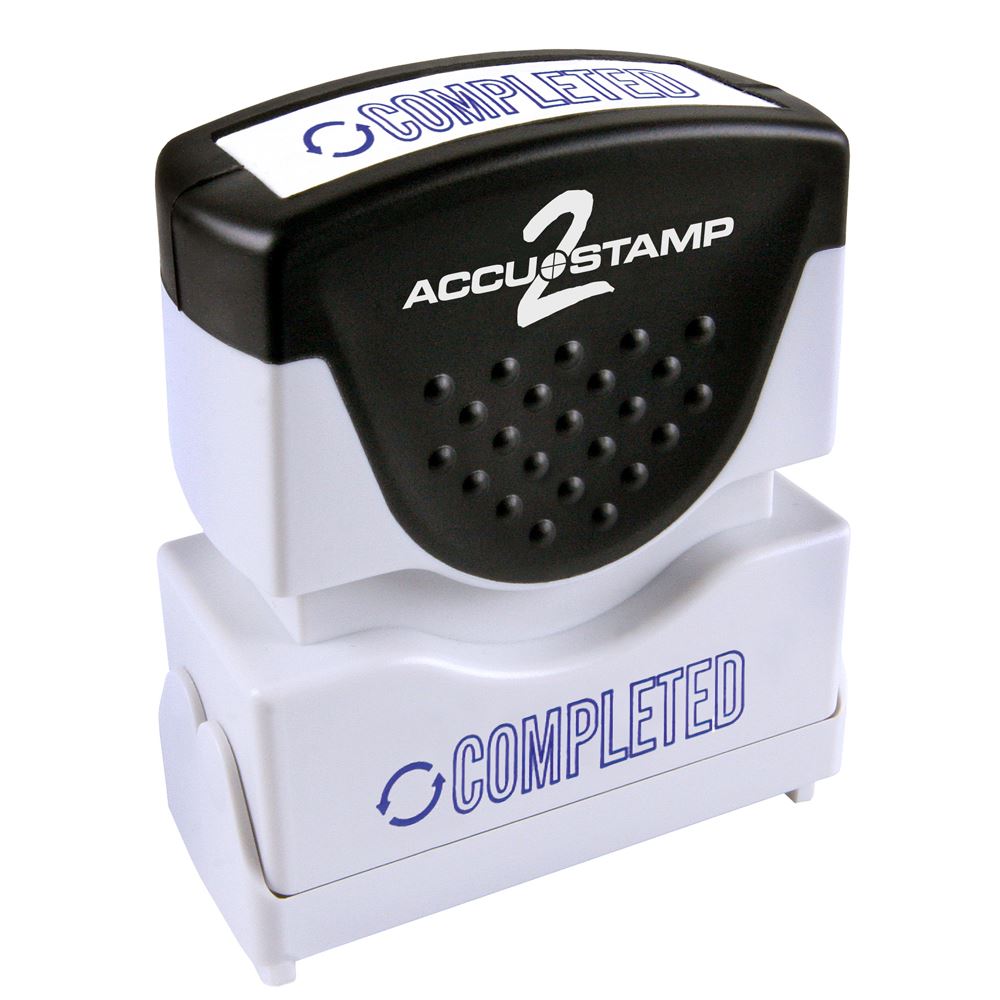 AccuStamp 2 Message Stamp with Shutter, 1-Color, COMPLETED, 1-5/8" x 1/2" Impression, Pre-Ink, Blue Ink (035582)