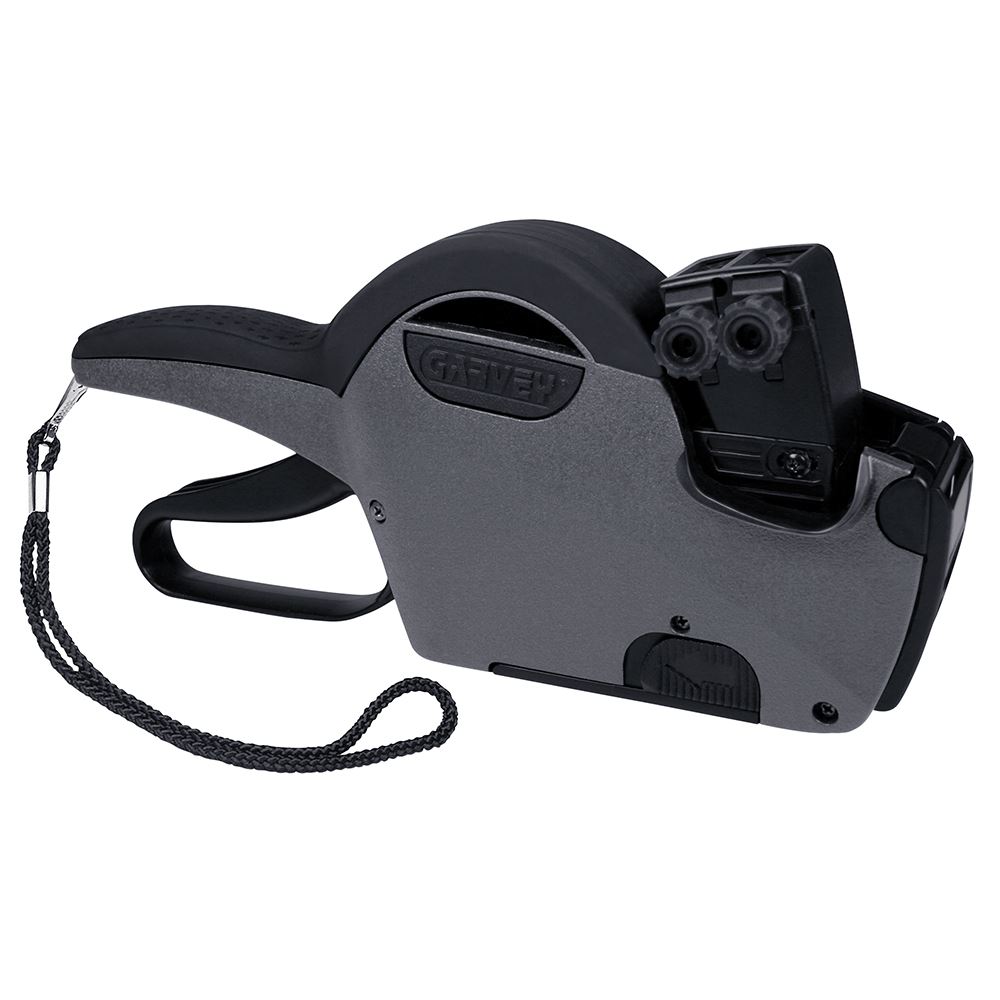 Durable labeler features easy drop-in loading and a self-correcting feed mechanism to ensure jam-free operation. Handle's rubberized grip provides enhanced comfort. Easy-to-adjust print bands produce crisp, clear, fast-drying characters. Storage slot for a spare ink-roller and an attached user guide help keep it simple. Ink roller and lanyard included.