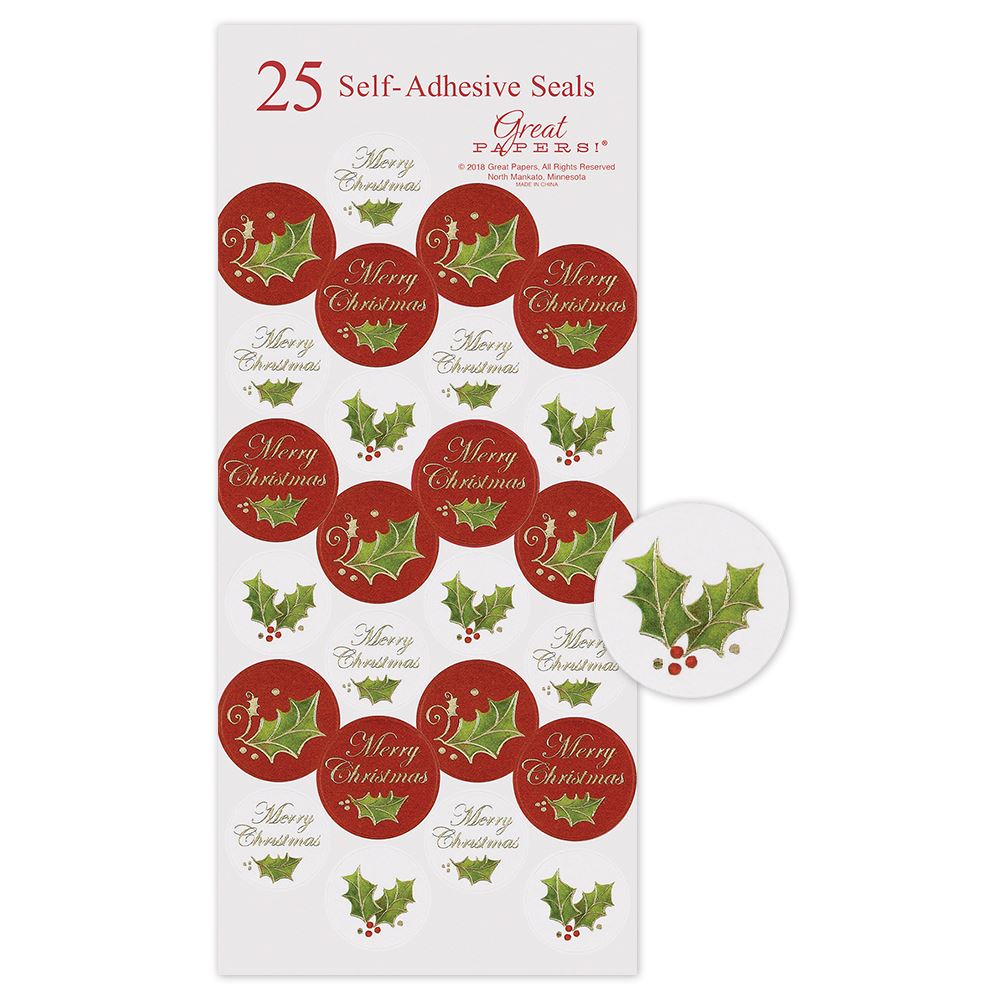 Great Papers! Christmas Holly Foil Seals, 25 count, 1" (2012343)