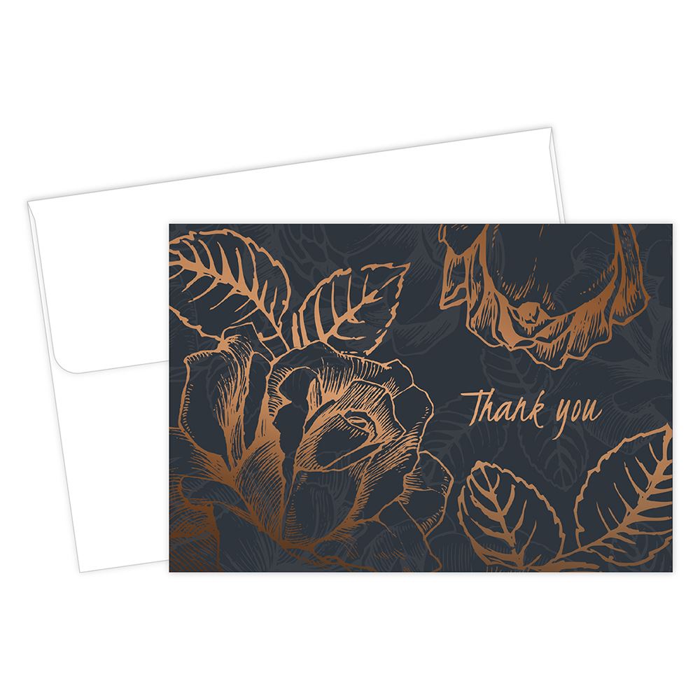 Express your gratitude with these brightly printed with copper foil accent thank you note cards. Pack contains 50 note cards and 50 white envelopes.