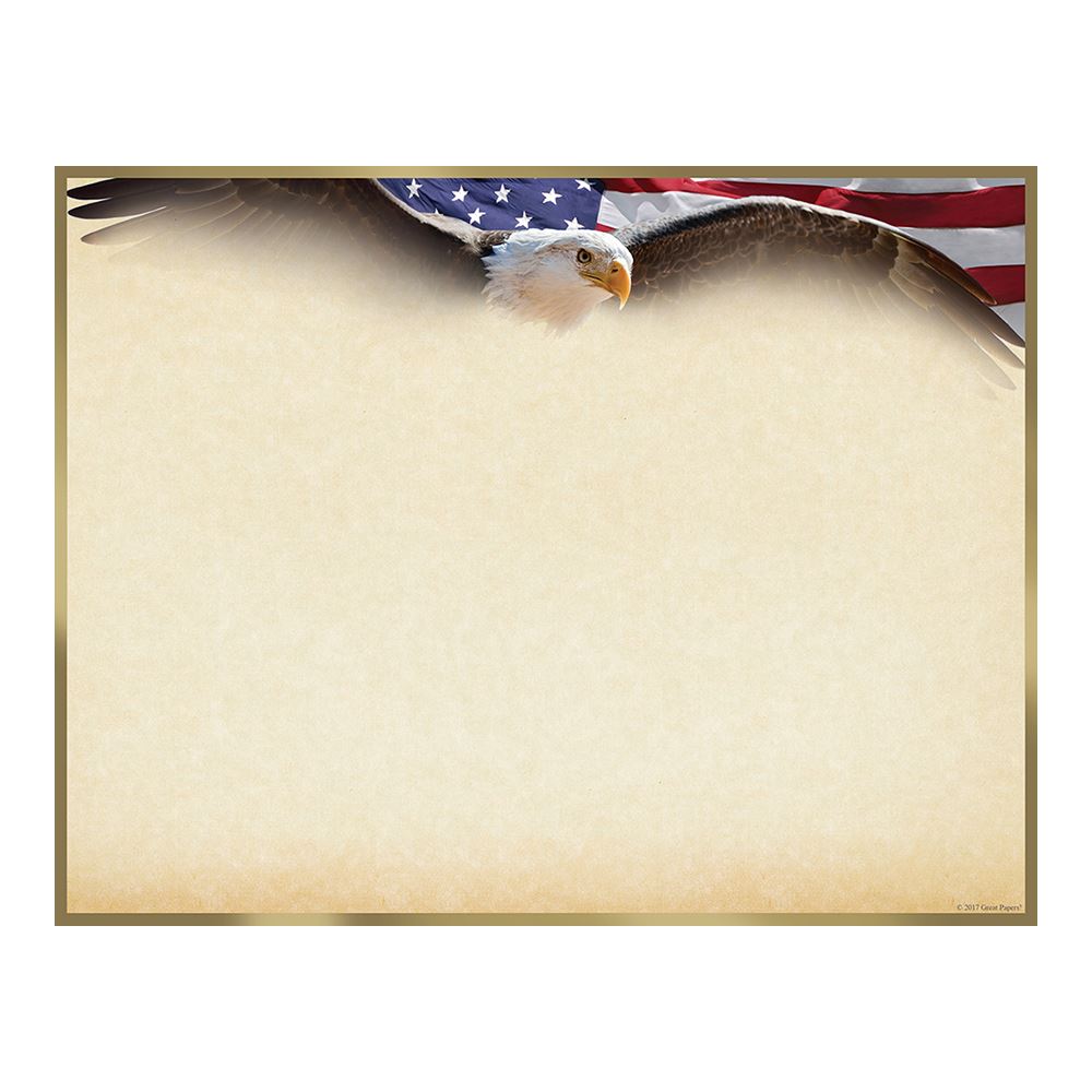 Recognize an achievement or a job well done with Great Papers! flying Eagle foil certificate. These premium stock certificates are 8.5" x 11" and compatible with most inkjet and laser printers. Pack contains 15 certificates. Add a Great Papers! certificate cover for a complete and professional look!