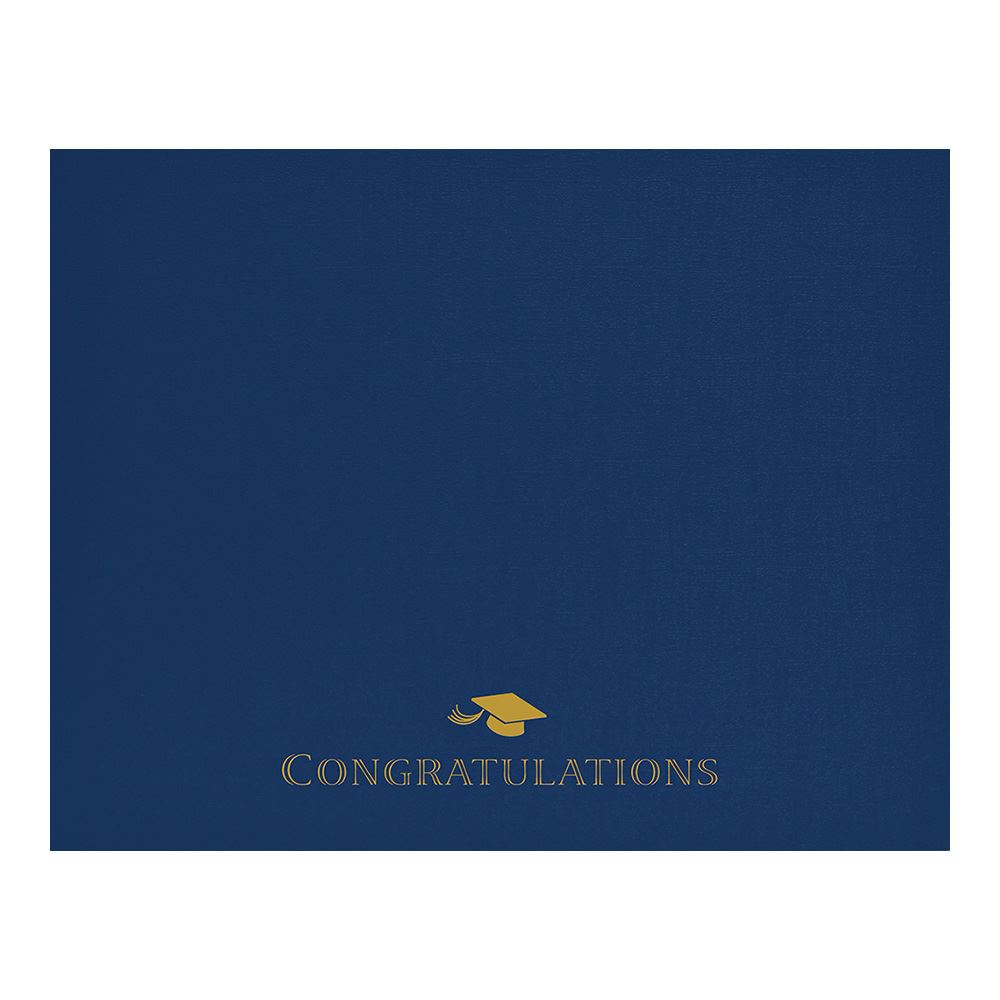 Present your award and recognition certificates in style with a Great Papers! graduation navy certificate cover. Certificate cover is 12" x 9.75" with die-cuts to hold an 8.5" x 11" certificate in either portrait or landscape. Five covers per pack