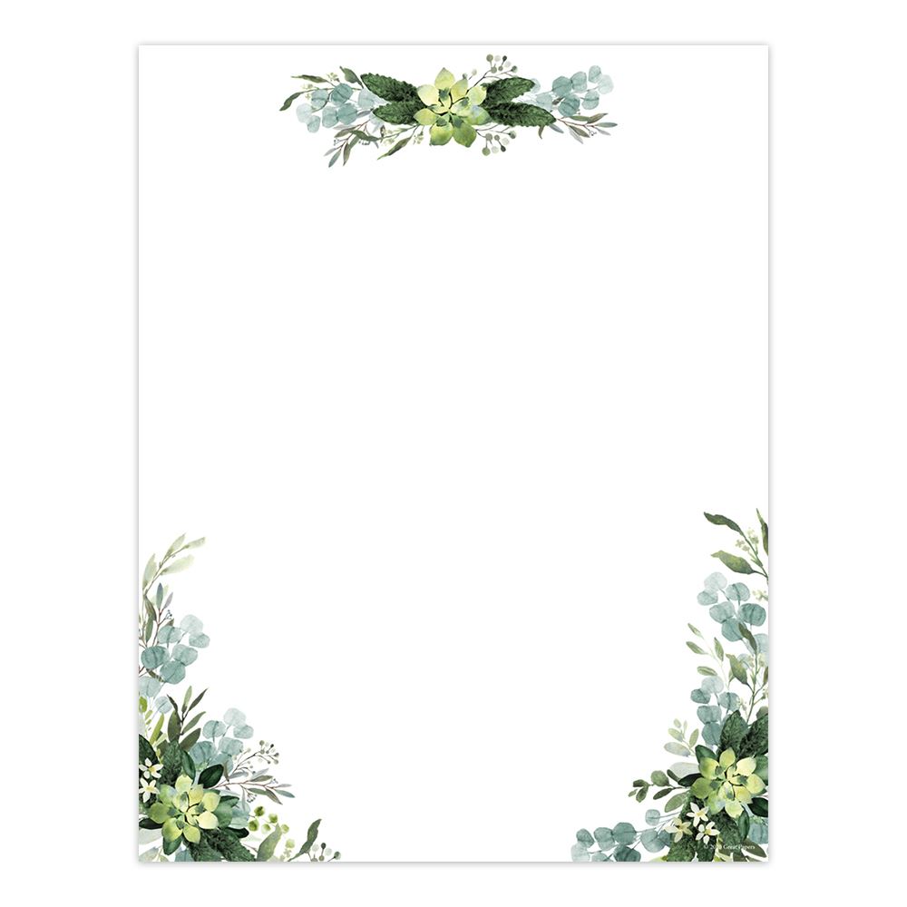 Great Papers! lush greenery themed letterhead is the perfect way to communicate your special event, sale or announcement. This trending design can be used for all occasions. This letterhead offers a lush greenery border design that makes it ideal for all your events! Each lush greenery designer pack includes 80 sheets of printed 8.5"x11" paper on 65 lb. text.