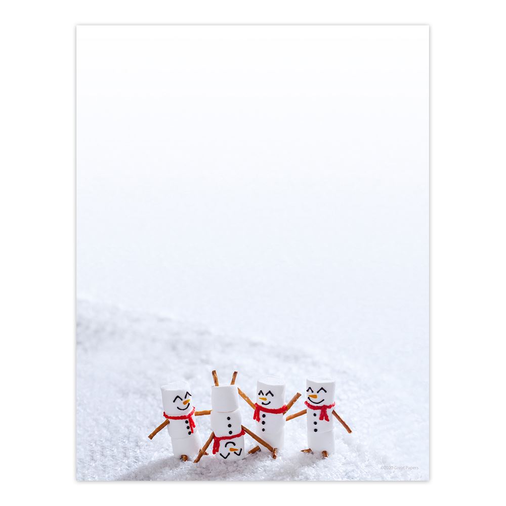 Great Papers! marshmallow snowmen themed letterhead is the perfect way to communicate your special event, sale or announcement. This trending design will offer the holiday spirit to all who receive it. This letterhead offers a marshmallow snowmen design that makes it ideal for all your holiday events! Each marshmallow snowmen designer pack includes 80 sheets of printed 8.5"x11" paper on 65 lb. text.