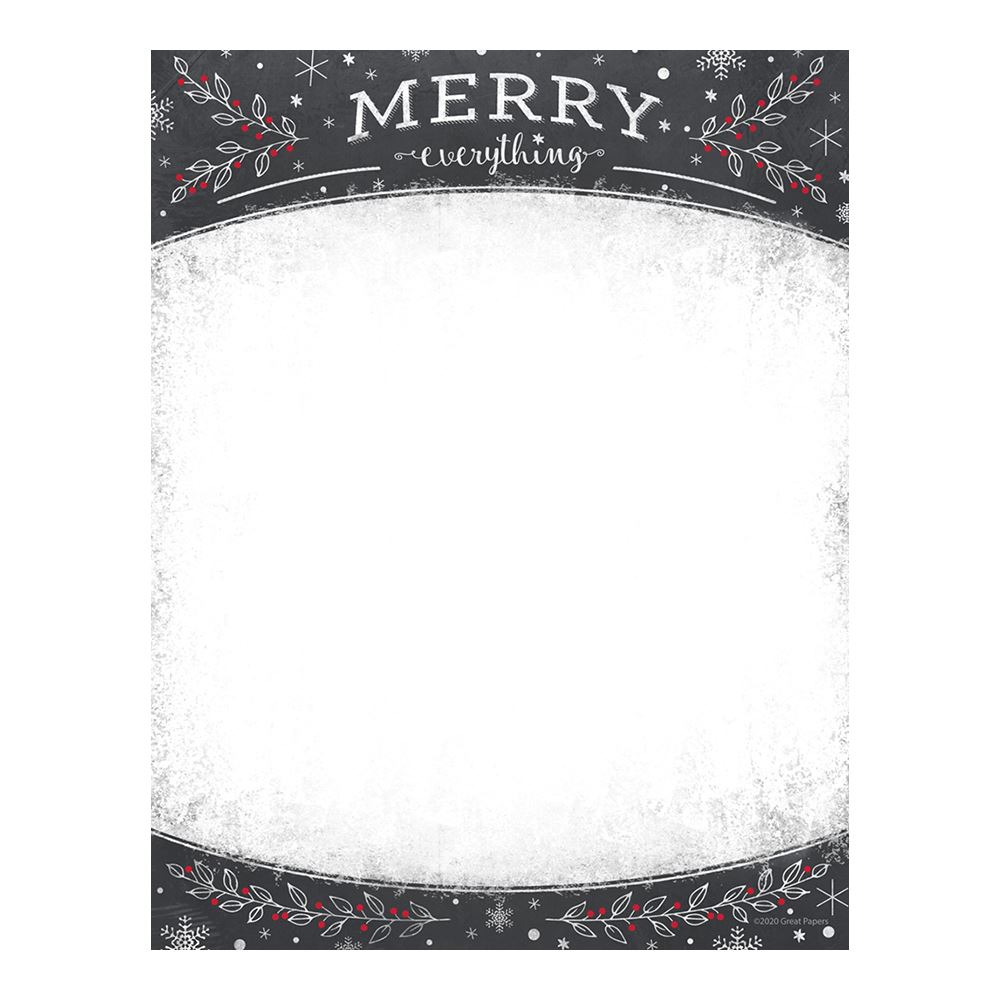 Great Papers! merry everything themed letterhead is the perfect way to communicate your special event, sale or announcement. This trending design will offer the holiday spirit to all who receive it. This letterhead offers a top border design that makes it ideal for all your holiday events! Each merry everything designer pack includes 80 sheets of printed 8.5"x11" paper on 65 lb. text.