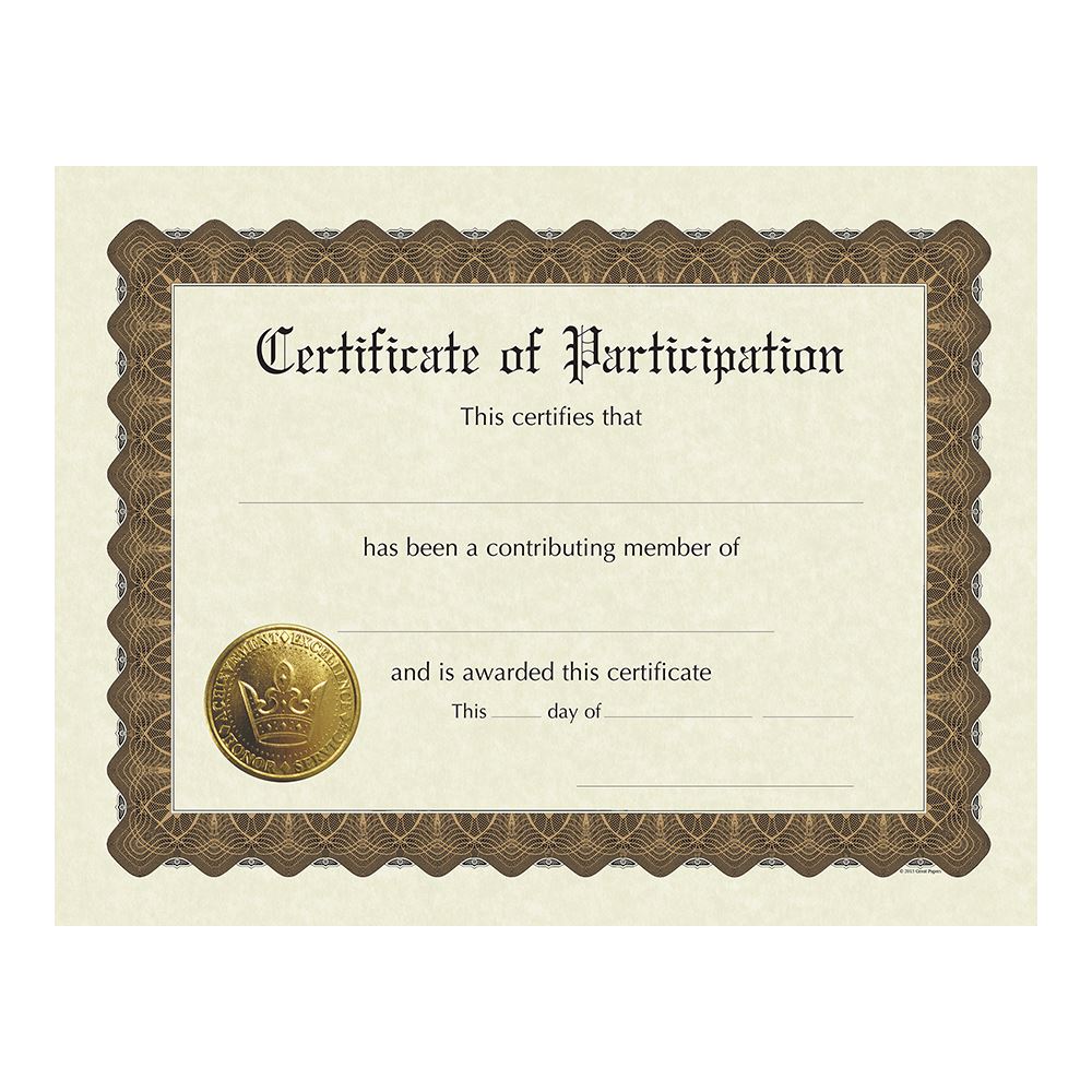 Great Papers! Participation Certificate, Pre-Printed Gold Foil and Embossed, 8.5" x 11", 6 Count (930800)