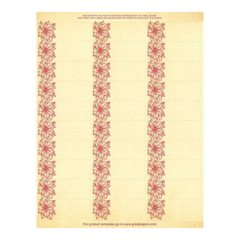 Great Papers! poinsettia Foil Address Labels measuring 1" X 2-5/8" Each are ideal to dress-up your holiday mailings. Label is compatible with most inkjet and laser printers. Pack contains 4 each 8-1/2" X 11" Sheets of 30 up Labels for 120 labels total. Visit www. Greatpapers for easy to use printing templates.