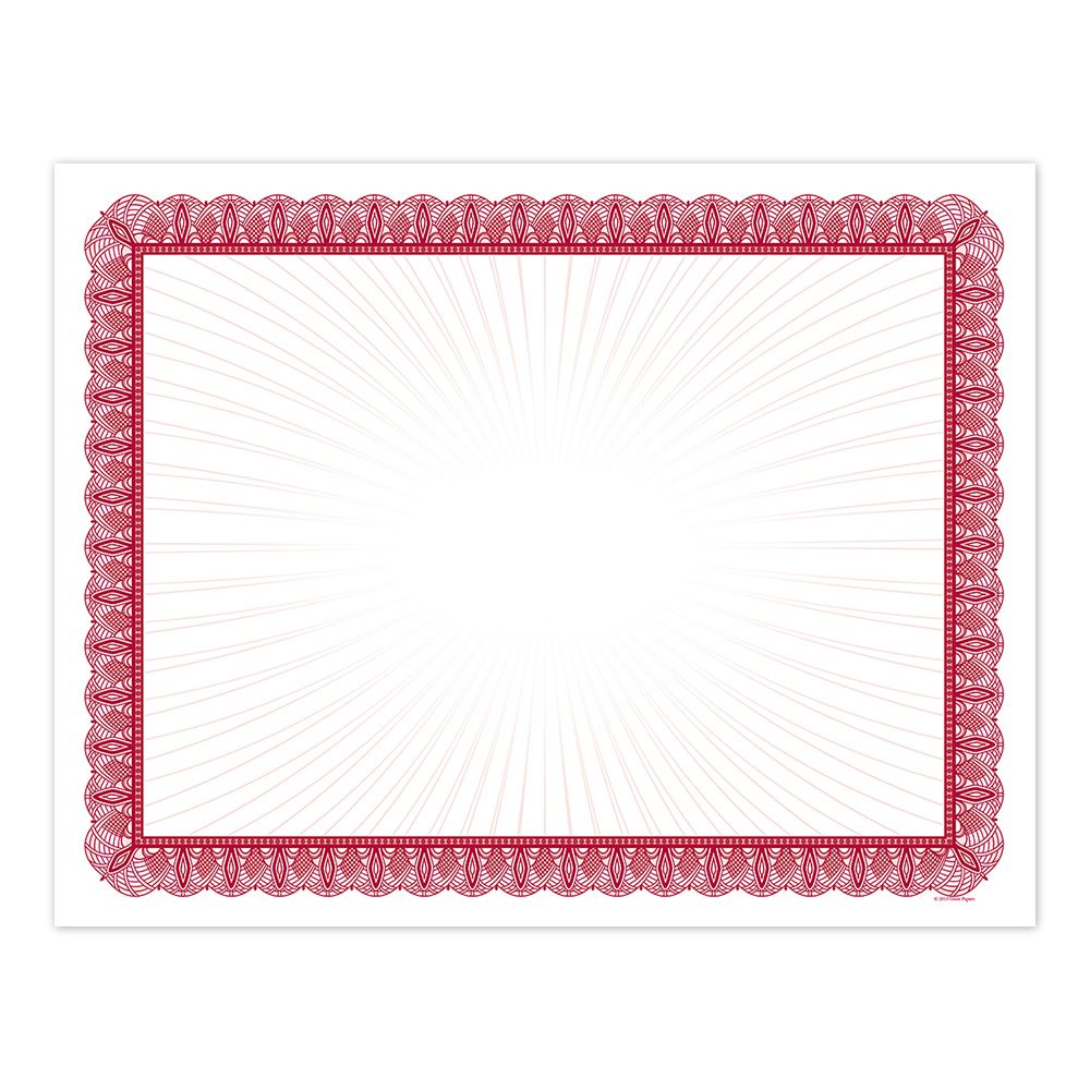 Recognize achievements and celebrate special moments with Great Papers! Red Value Certificates with Red Border. This pack contains 100 sheets of elegantly designed certificate paper, perfect for award ceremonies, achievements, and recognition events. Each certificate is letter-sized, measuring 11 x 8.5 inches, ensuring a standard and professional presentation. The certificates feature a stylish blue border, adding a touch of sophistication to your awards. They are compatible with most inkjet and laser printers, allowing for easy and convenient printing of personalized certificates. Whether it's for academic accomplishments, employee recognition, or other significant milestones, these certificate papers provide a memorable way to honor recipients.