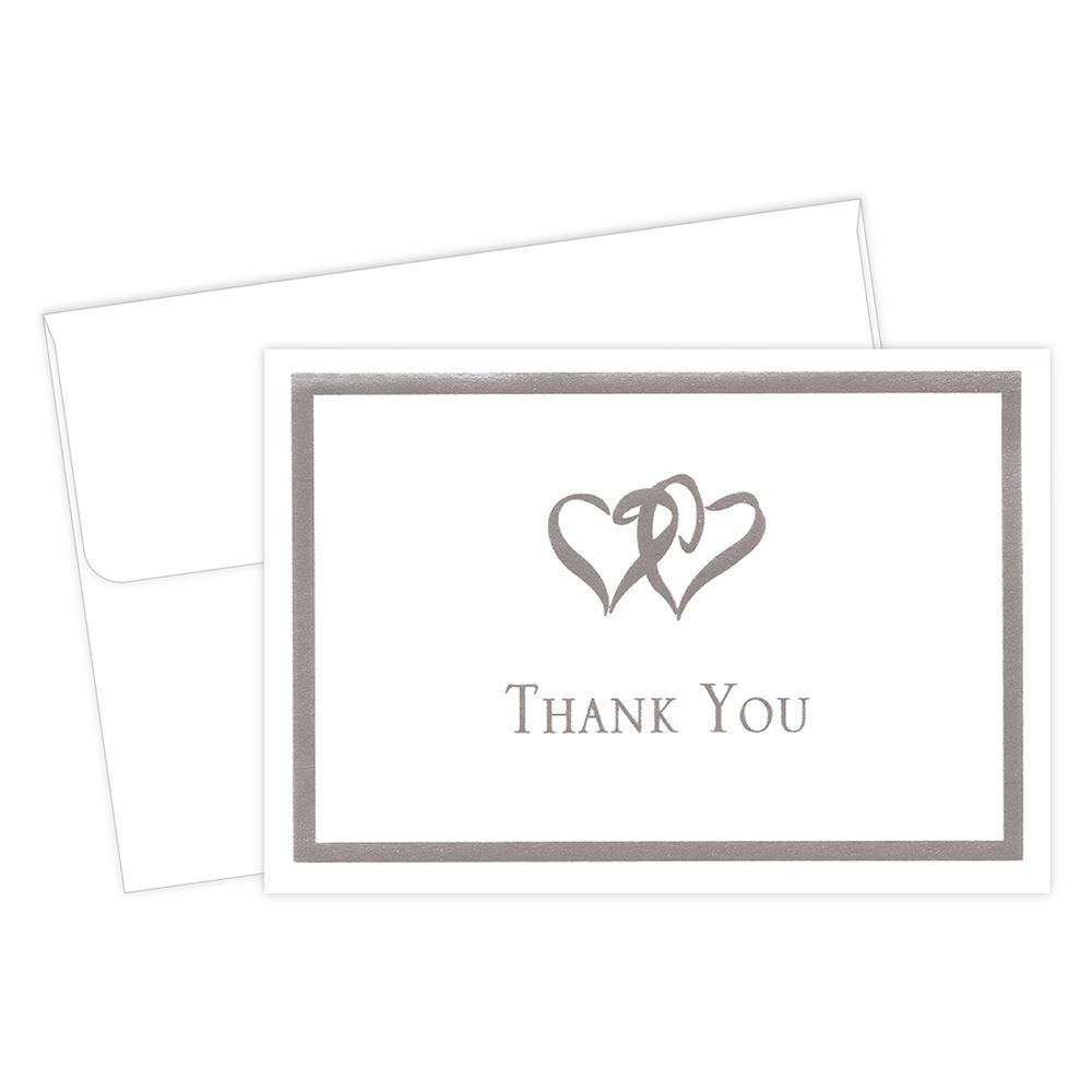 Great Papers! Silver Double Hearts Thank You Note Cards with Envelopes, 4.875" x 3.375" (folded), 50 count (145000)